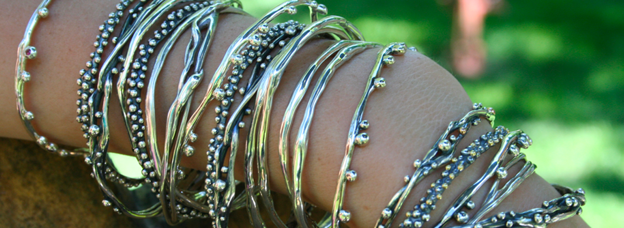 Throughout the Northeast, Bertoni’s work has traveled to craft fairs, exhibitions, galleries and various boutiques. Rachel has worked for some of America’s largest gold manufacturers that use the lost wax casting technique to make their jewelry. She has been a professional wax carver for years. Her recent branch collection is based on nature and is very comfortable to wear. Her designs have won awards including the World Gold Council top trend designs. She creates her jewelry by hand in Warwick, New York, USA.